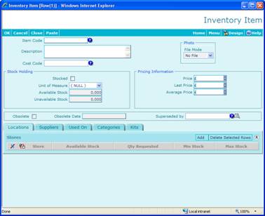 The Obsolete check box is used if the item is obsolete and no longer available for issue.