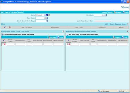 The Store field is a drop-down list of all store locations defined in the system. This allows the user to manually select the store location. This is mandatory.
