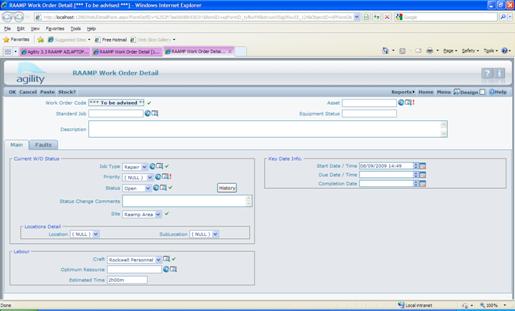 If there is a requirement to register any faults against this work order, faults tab can be used. It provides a way of putting multiple faults by filling up fault group and fault details in the faults grid: