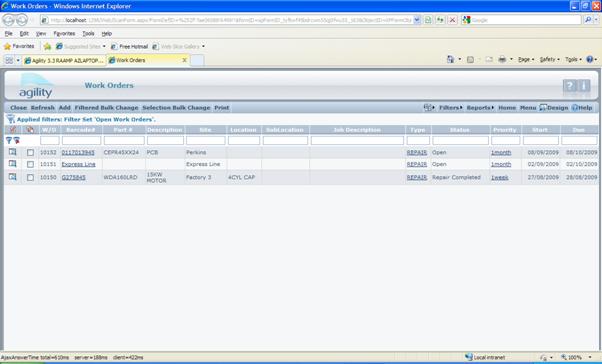 List of current Work Orders can be accessed by using Work Orders -> Work Order List menu action, which will cause the following form to appear on the screen: