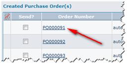 Each line in the grid represents a different purchase order. To send one or more purchase orders place a tick in the checkbox for that order in the ‘send’ column.