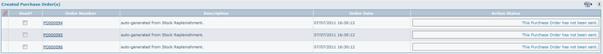 For more information on the function action and resultant status of sending purchase orders please refer to the send purchase order section. This element, which is not required to be performed from stock replenishment, deals with how to send purchase orders, ‘en masse’, from the stock replenishment form.