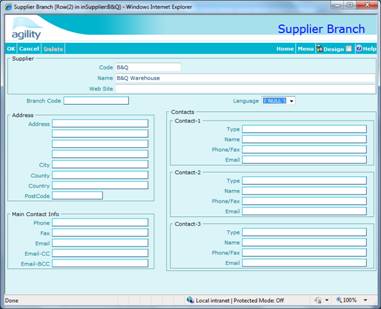 The Code field free text but must be populated. This represents an identifier for the Supplier Branch.
