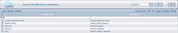 Typical examples of categories would be; Electrical, Induction, Chemical, Health & Safety etc.