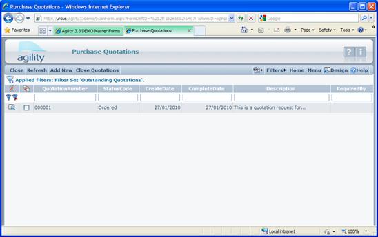 To complete the process flow of the Quotation, all rejected or ordered quotations need to be closed. Closing operation can be performed from the list of quotation screen by simply selecting the quotations which need to be closed and using “Close Quotations” menu option: