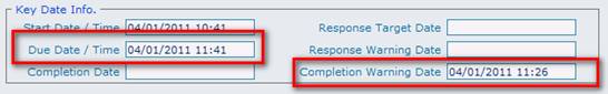 When a work order is then created using this priority, the warning date/time is set to 15 minutes prior to the calculated due date/time.