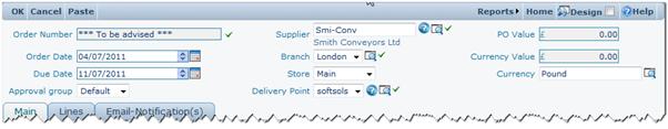 Purchase orders are subject to a work flow that can be defined by the system administrator within the system so that the method can be tailored to suit business needs. Please refer to ‘Purchase Order Status’ section in standing data for more information on how to do this.