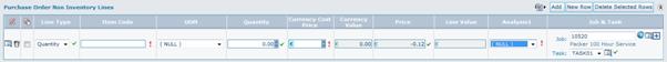 The ‘Purchase Order Non Inventory Lines’ only becomes available when a work order value has been entered into the ‘Direct Purchase to Work Order’ field on the main tab described above.