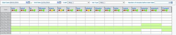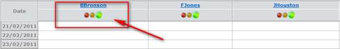 Within the scheduler grid, below each labour resource name is a ‘traffic light’. This indicates the availability of that labour resource.