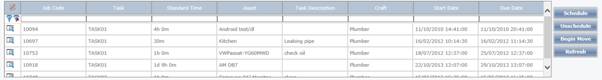 The lower pane displays a grid containing a list of unscheduled tasks; these are tasks that have not yet been allocated to a labour resource. Since this grid shows tasks for work orders containing more than one task the same work order number will be repeated in the grid, but for each different task. The grid operates in the same way as a standard scan form in terms of column sort, drill down and column filters.