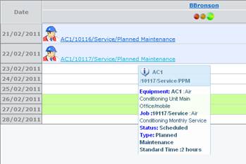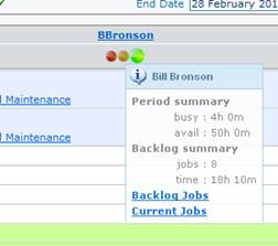 Moving the mouse over the indicator will provide a tooltip summary of the current work load for the labour resource.