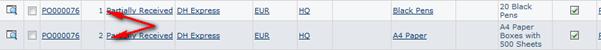Clicking the detail icon on the line will drill into and show the whole purchase order detail.