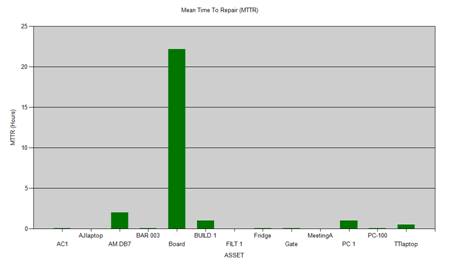 Items showing a low number of days on the ‘mean time between failures charts’ do indicate frequent breakdowns. Ones where the number of days between breakdowns is higher do suggest higher reliability. Using this in conjunction with the ‘time to attend’ and ‘time to repair’ charts identifies problems within the process for which the causes can then be investigated.