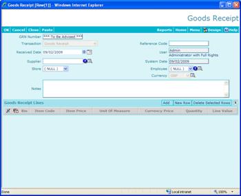The Store field is a drop-down list of all stores defined within the system. This is used to record the Store that is receiving the goods.