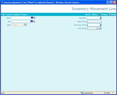 The Movement Lines grid allows the details of the inventory movement to be entered: