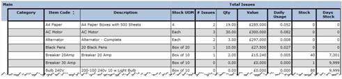 Any items where the value issued is high should be looked into with a view to finding a better price to help reduce costs. High volumes of issues of the same item should also be looked into to see why so many are being used. High usage of a particular part or item could indicate a failing in the production process or maintenance schedule.
