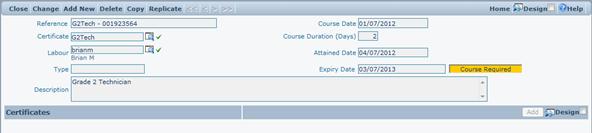 When the record is added, additional information is added, like the attained date and certificate issue number. When the attained date is added the expiry date is automatically calculated from the validity period on the selected certificate definition.