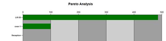 The chart displays equipment items on the y axis and the selected analysis method on the x axis. The screen capture below shows ‘labour cost’. Again the items displaying the highest values are those using the most resources and causes should be looked into.
