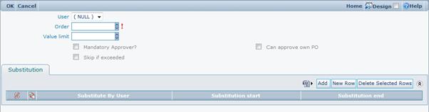 This allows for a different user to act on behalf of this approver to cover periods of absence. To add a substitution entry simply select the user from the drop down list and enter the dates for when the substitution is to start and end.