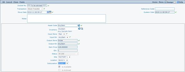 • Asset Code – this can either be an existing Asset or a non-existing Asset Code. In the case when non-existing barcode is entered, a new Asset will be created automatically.