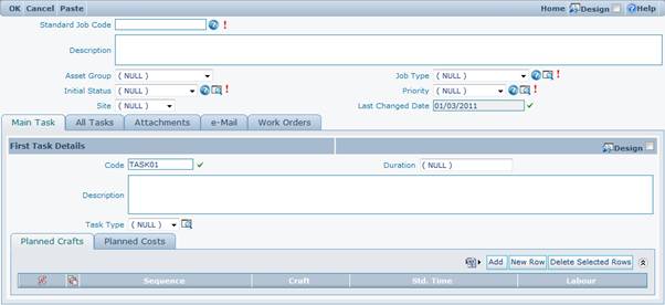The Standard Job is set up in exactly the same way as for the Cyclical Planned Maintenance.