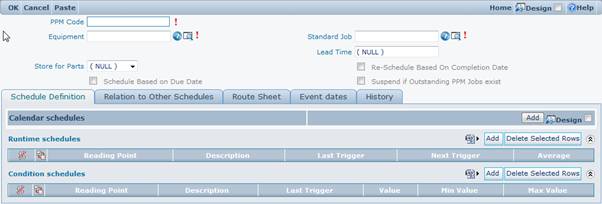 As with the Cyclical Planned Maintenance, Run Time Schedules are made up of a Standard Job and a Schedule Record.