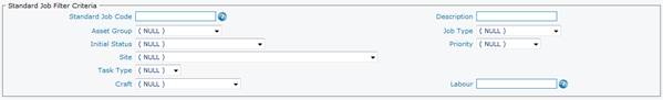 The standard job filter is a common element amongst many standard job reports and allows for standard jobs to be selected based upon the following criteria