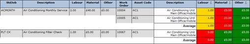 Results are returned based upon filter criteria and operational parameters which conditionally control the background colour of the actual costs cells.