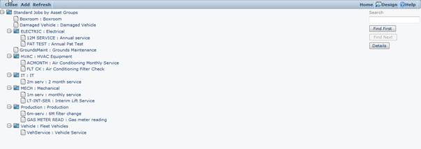 Accessed from PPM Schedules >> Standard Jobs By Asset Group