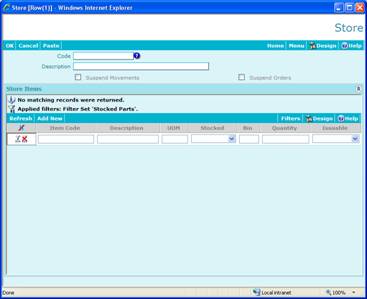 The Store Items section shows all the inventory items that are held in the store. This scan form is normally maintained when adding Inventory items. Clicking Add New takes the system to the standard Add an Inventory Item functionality.