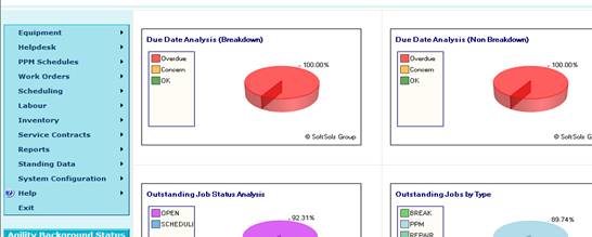 The Green Triangle at the bottom left of the screen indicates the state of the “Background Process”. This will be discussed later in relation to PPM Schedules.