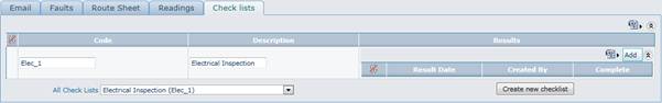 To fill in the checklist click the add button located in the results grid adjacent to the required checklist.