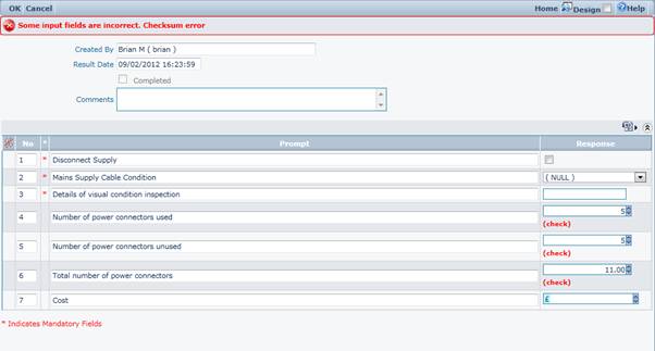 When data entry has been completed and ok has been clicked, if the form returns a checksum error. The data entered should be checked for validity.