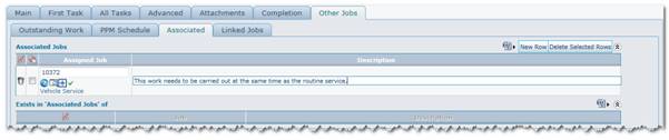 This provides a method of creating an association between 2 or more jobs and viewing any currently associated jobs. Associating jobs provides, for example, the user with a view of any other work currently being undertaken that may have implications this particular work order.