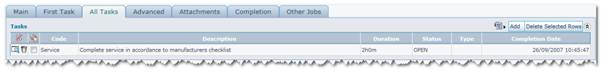 If multiple tasks are used then all work order tasks can be accessed from the all tasks tab. The first task tab opens the task detail sub form directly, as shown below.