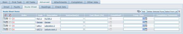 A route sheet is simply a list of equipment items where the same tasks as described on the current work order need to be carried out. These are normally used for planned maintenance tasks. The list of items is accessed suing the route sheet tab.