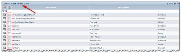 Once the selection has been made click the ‘get selected rows’ option to return the selected rows back to the grid.