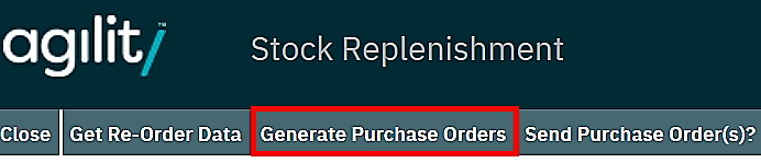 To launch the function click the ‘Generate Purchase Orders’ option at the top of the form.