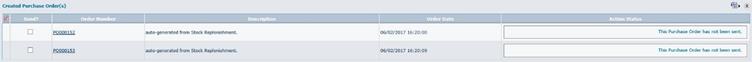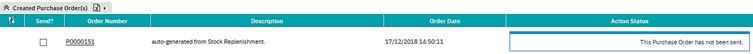 This element, which is not required to be performed from stock replenishment, deals with how to send purchase orders, ‘en masse’, from the stock replenishment form.
