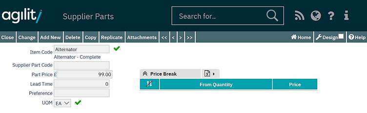 A scan form of all the parts supplied by this supplier; This is maintained either when adding an inventory item or by Add New.