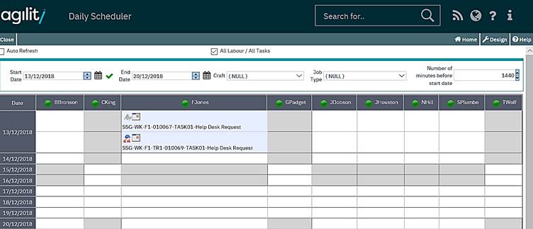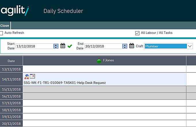 In this example, the maximum number of completed tasks is set to 1 in the system parameter, the scheduler will show the most recent completed task per labour per day plus any outstanding tasks.