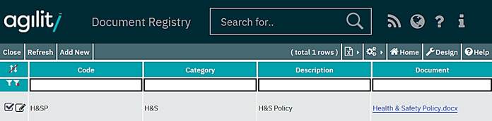 Selecting the ‘Document’ option allows a document from the Document Registry to be attached. The document registry is a source of documents that are registered within the Agility system.