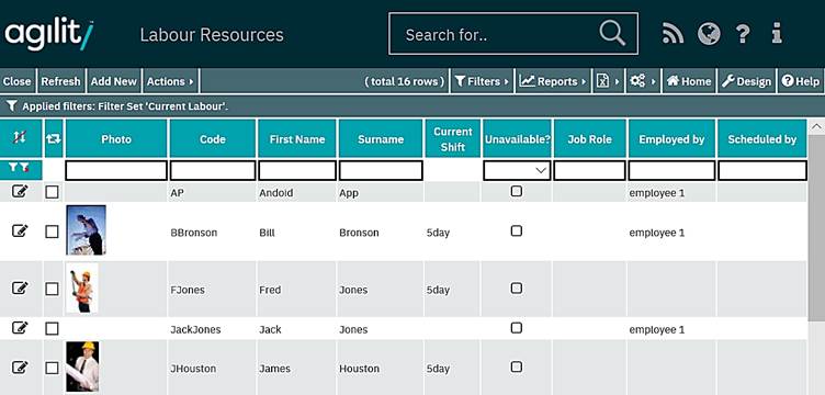 A Labour Resource Record contains all information about a labour resource including the craft, current shift, labour cost rate, absences and qualifications.