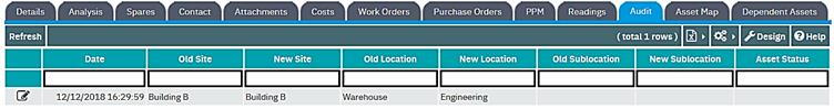 This log shows all changes on fields: Site, Location and Sub-Location (movements between Sites, Location or Sub-Location).