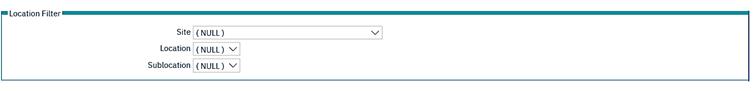 The location filter which works in addition to the equipment filter, allows equipment to be selected by site, location or sub-location.