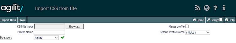 The CSS file input field is used when importing a style sheet. Click on the Browse button to select the file to import.