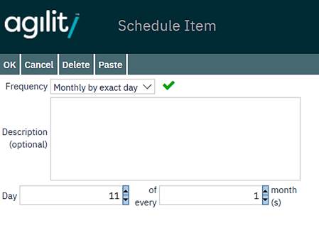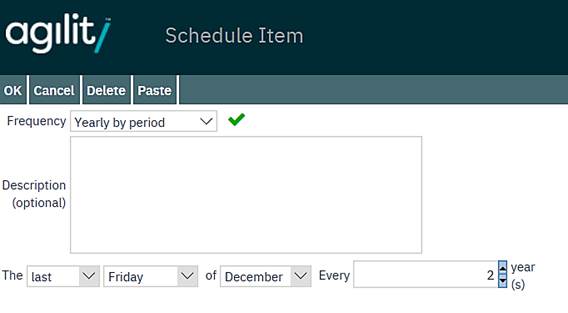 Select the cycle frequency from the drop down list. Once selected, the form will be updated to show the required fields for this cycle period.