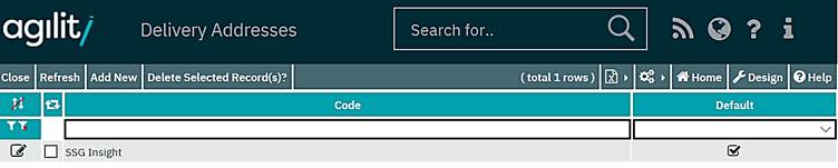 Accessed from Standing Data >> Inventory >> Purchase Order Delivery Addresses
