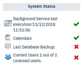 A green “tick” indicates that the item has no issues, a red “cross” indicates attention is required.