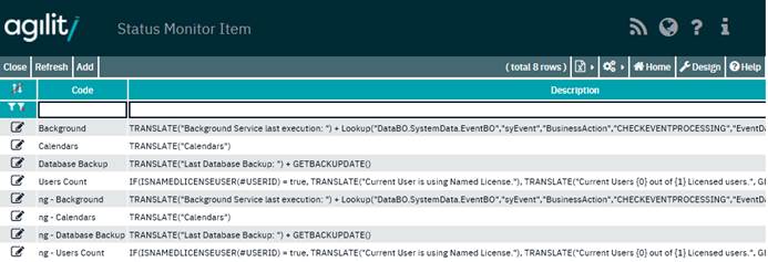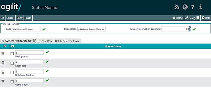 The System Status Monitor is used to notify users that something is wrong with system. The particular items that are failed are fully configurable and are user defined by using strings expressions. See the pictures below that shows example health items and system condition.